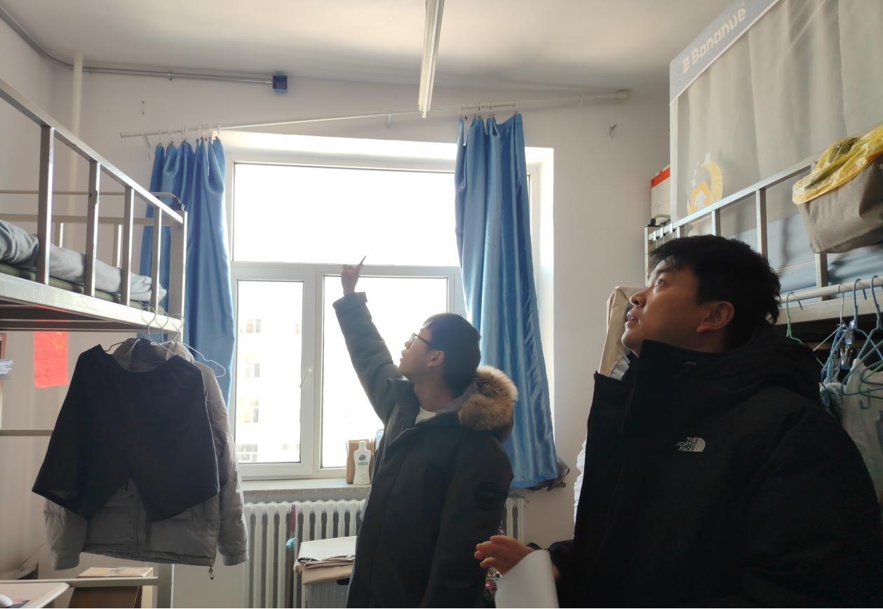 检查过程中,张瑛、曲艺逐间查看寝室用电安全与环境卫生情况,重点排查是否存在使用违章电器、私拉电线、存放违禁物品等安全隐患,详细了解各公寓电气系统改造进展,与后勤服务人员交流学生住宿管理情况,并深入寝室与同学们亲切交谈,询问在校科研生活与离校安排,提醒大家在寝室电气系统改造期间妥善保管个人物品,离校前务必关闭电源、锁好门窗,杜绝安全隐患。