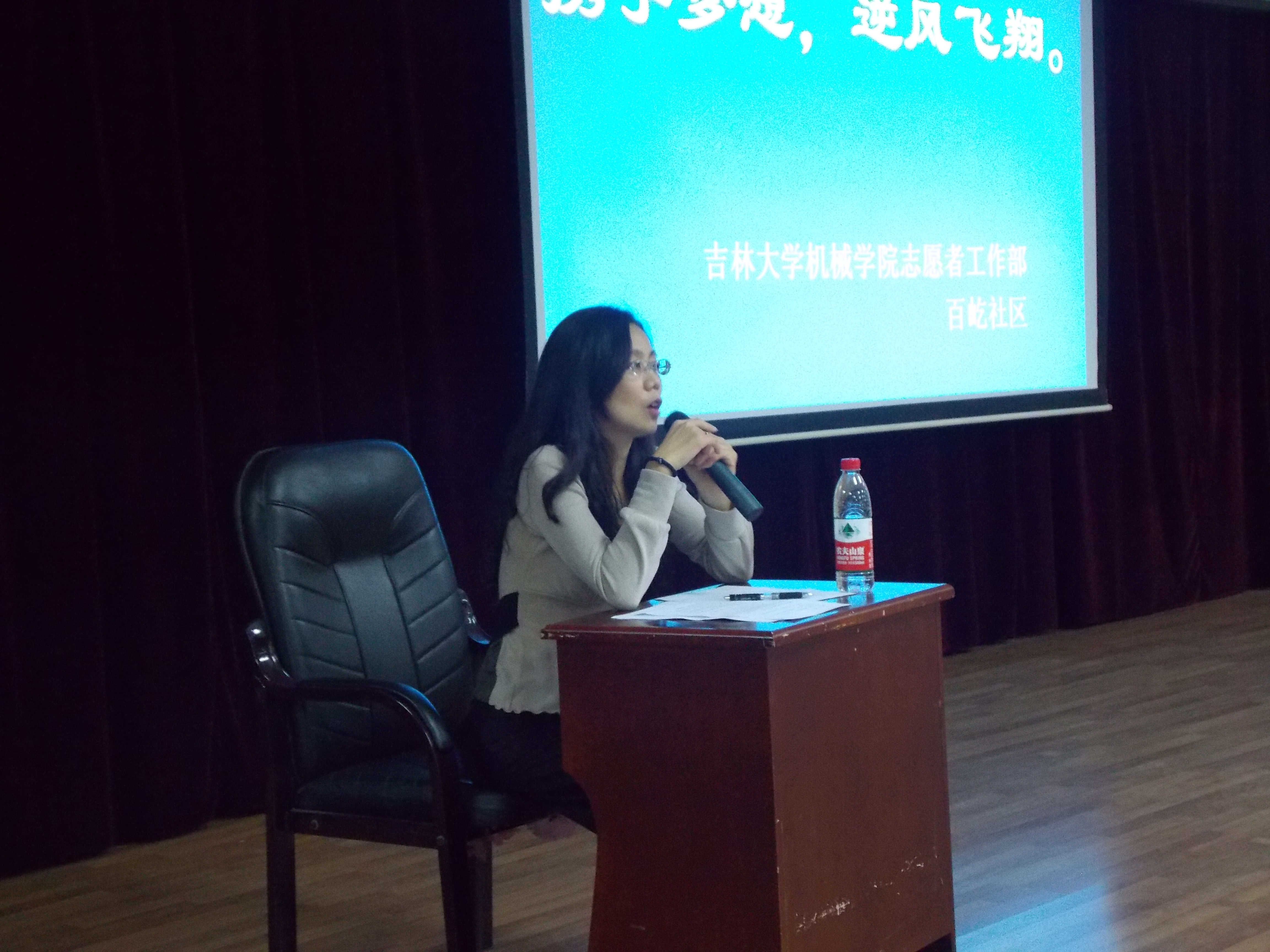 26日晚6点,机械学院志愿者工作部、团委组织部和学生会外联部联合举办了“逐梦”励志大讲堂第一讲——“照亮生命”主题演讲。他们邀请了长春市南关区残联副主席刘影女士为大家演讲,残运会百米亚军梁永彬先生也来到了现场与同学们交流。
