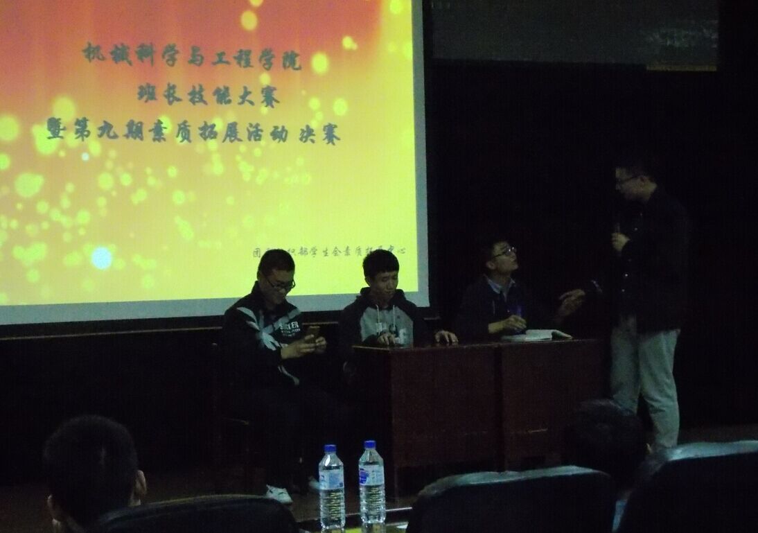 班长技能大赛决赛暨第九期素质拓展活动在愉快欢笑的气氛中告一段落,但是班长们的职责仍在肩头,工作依然要有条不紊地继续。相信各位班长在本次比赛中都有所反思与收获,在日后的工作生活中也能够更好地解决同学们生活中出现的各种问题,协调好大家的学习与生活,与大家相伴走过大学美好的四年时光,共同创造属于机械学院的辉煌!