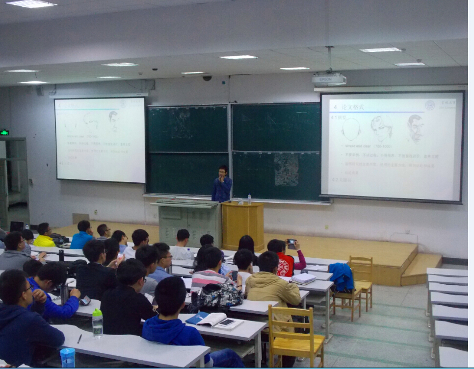 为了帮助大一学生了解数学建模,拓宽视野,以更加积极的姿态迎接大学生活,团委组织部于4月26日晚在逸夫楼A411举办了第十六期励志大讲堂。本次讲座由林垟钵、张鲁宏两位优秀学生代表主讲,2014级全体同学参加了此次讲座。