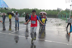 5月14日上午,吉林大学第54届运动会在蒙蒙细雨中拉开帷幕,各项比赛有条不紊地进行着。我院2013级学生张晓晨在去年打破跳绳比赛项目的纪录后,今年再创佳绩,以一分钟223个的成绩蝉联跳绳比赛冠军。