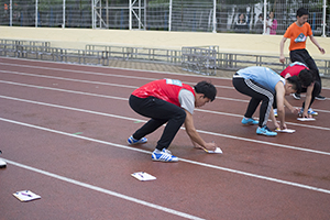 尽管比赛时风雨交加,但运动员丝毫没有畏惧冰冷的雨滴,依然全心地投入到比赛中,做好起跑的姿势,等待发令枪声的响起。裁判号令刚一发出,运动员如离弦之箭毫不犹豫地向前冲去。不管全身被雨滴淋湿,不管眼镜越来越模糊,他们心中只有取胜的信念。其中我院的蔡宏扬同学表现神勇,起跑已领先的他快速到达前方五十米答题处,胸有成竹地选出正确答案后继续向终点冲去,最后毫无悬念地夺得了本项目的冠军。场上,智勇双全的他是全场的焦点,成为了一道靓丽的风景线。观众们都为他欢呼呐喊,比赛结束后,现场掌声雷动。
