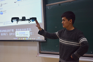 在主持人饱含激情的开场白之后,杨睿学长首先上台为同学们介绍了他的创业团队及其所开发的无人机项目,并从“由无到有”、“由有到精”两方面为同学们讲解了何为创新。他用亲身实例告诉同学们创新的重点在于满足市场需求,创新的技术要有一定的市场价值。谈及团队的创业过程,杨睿学长深有感触,团队、项目、资源——他从创业的三要素入手,为同学们深刻剖析了一个创业团队成功的必要条件,令在场的同学们受益匪浅。在演讲的最后,杨睿学长以“梦想”这一话题作结,与同学们亲切互动,鼓励大家要敢于奋斗去追逐自己的梦想,将现场气氛推向一个小高潮。之后发表演讲的电子学院2013级李明洋学长用生动风趣的语言为同学们讲述了他参加全国电子设计竞赛的曲折经历,虽历经坎坷,但初心不改;徐若兰学长则是告诫同学们做好科研工作的前提是要规划好时间,保持健康。最后,杨睿团队进行了变速多旋翼无人机现场试飞,同学们眼界大开,喝彩不断,本次分享大会在同学们热烈的掌声中完美收官。