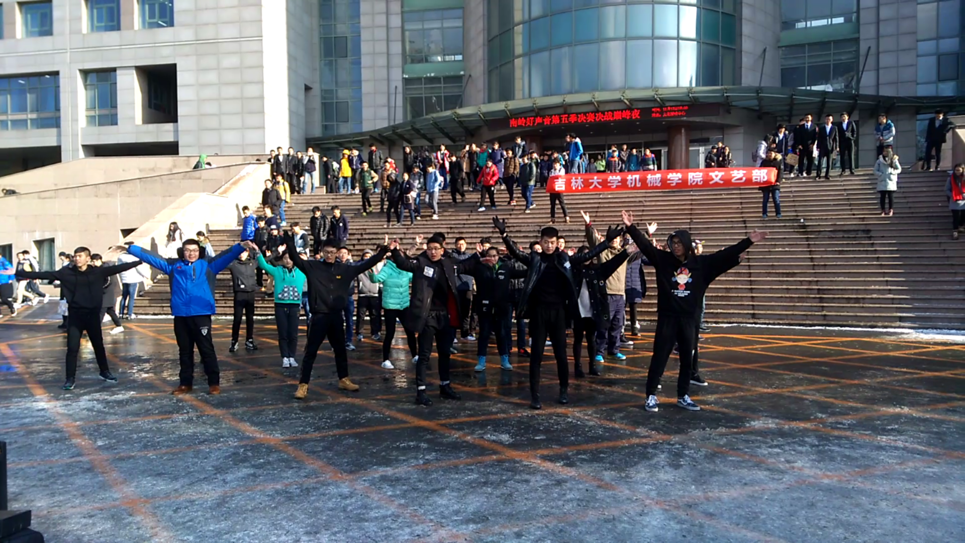 千里黄云向日曛,北风吹雁雪纷纷。转眼已是秋去冬来,但即使是这样一个天寒地冻的时节也挡不住同学们的青春热情。为让“快闪行动”能够被更多人所了解,丰富我校大学生青春气息及文化生活,由机械学院学生会文艺部主办的“快闪行动”于11月11日正午在逸夫楼门前举行,来自机械学院的40名志愿者参加了本次活动。