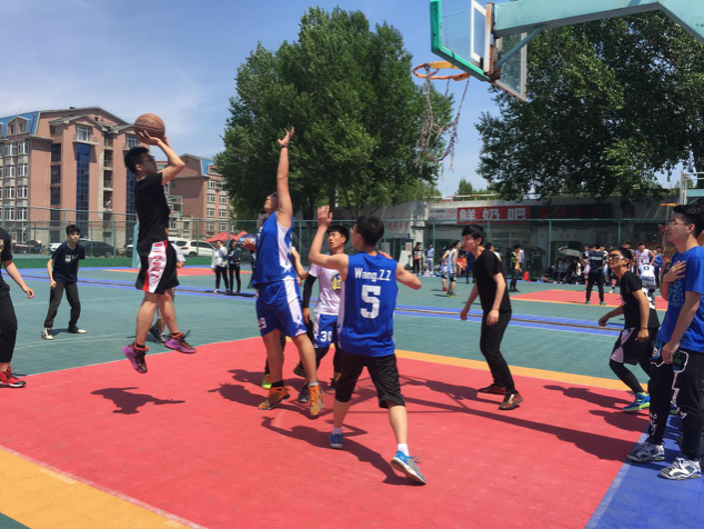 十里春风,花香满园。为了强健同学们的体魄,丰富同学们的课余生活,让同学们能够在繁忙的学习中进行体育锻炼,在辛老师的组织下,机械学院进行了大一年级篮球赛。经过了激烈的角逐,在5月17日中午,由5班与14班联队与1班与6班联队进行篮球赛决赛。