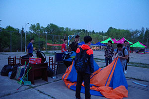 为了更充分地保证运动员们的休息,更方便地协调各部门的工作,更快捷地为同学们提供服务,团学组织的工作人员在5月19日凌晨就开始了在前卫南区搭建机械学院运动会大本营的工作。参加本次工作的学生干部来自秘书部、组织部、维权管理部和理论学习部等4个部门。
